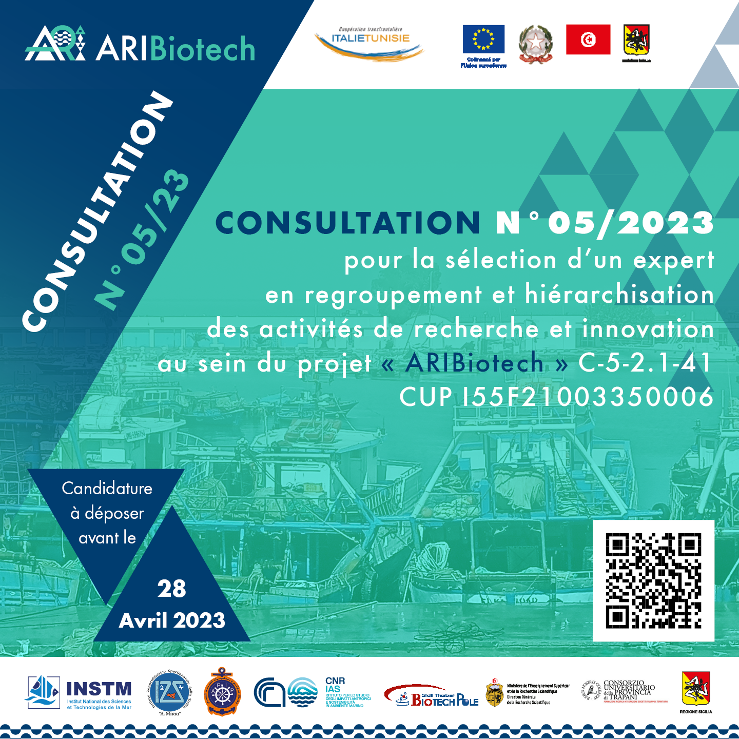 Consultation N°04/2023 pour la sélection d’un expert en veille normative dans le cadre ,de la valorisation des déchets marins au sein du projet « ARIBiotech » C-5-2.1-41 CUP I55F21003350006.